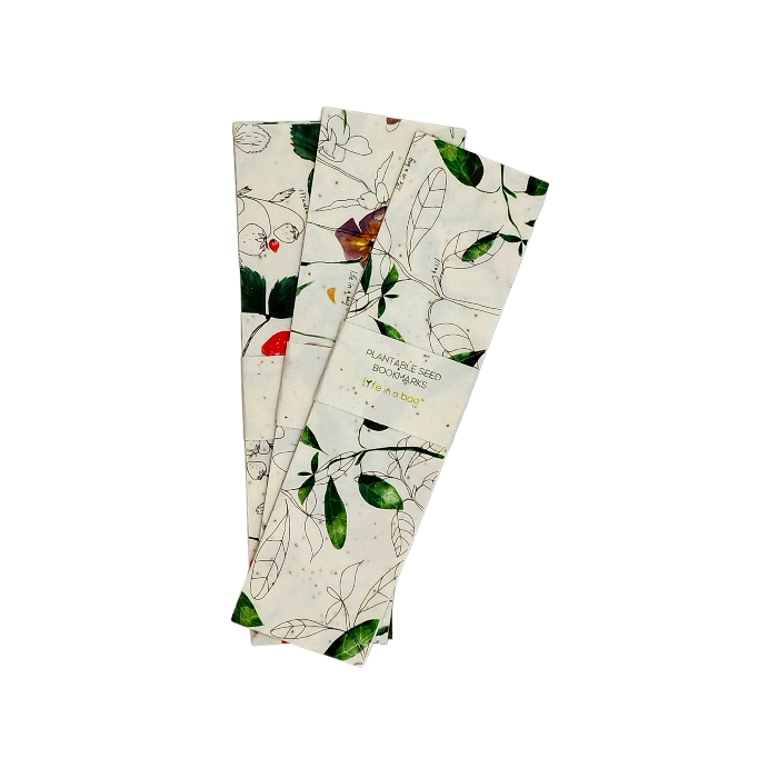 Marcador de livros, com ilustrações de flores e frutos que podem ser plantados, simplesmente fantástico